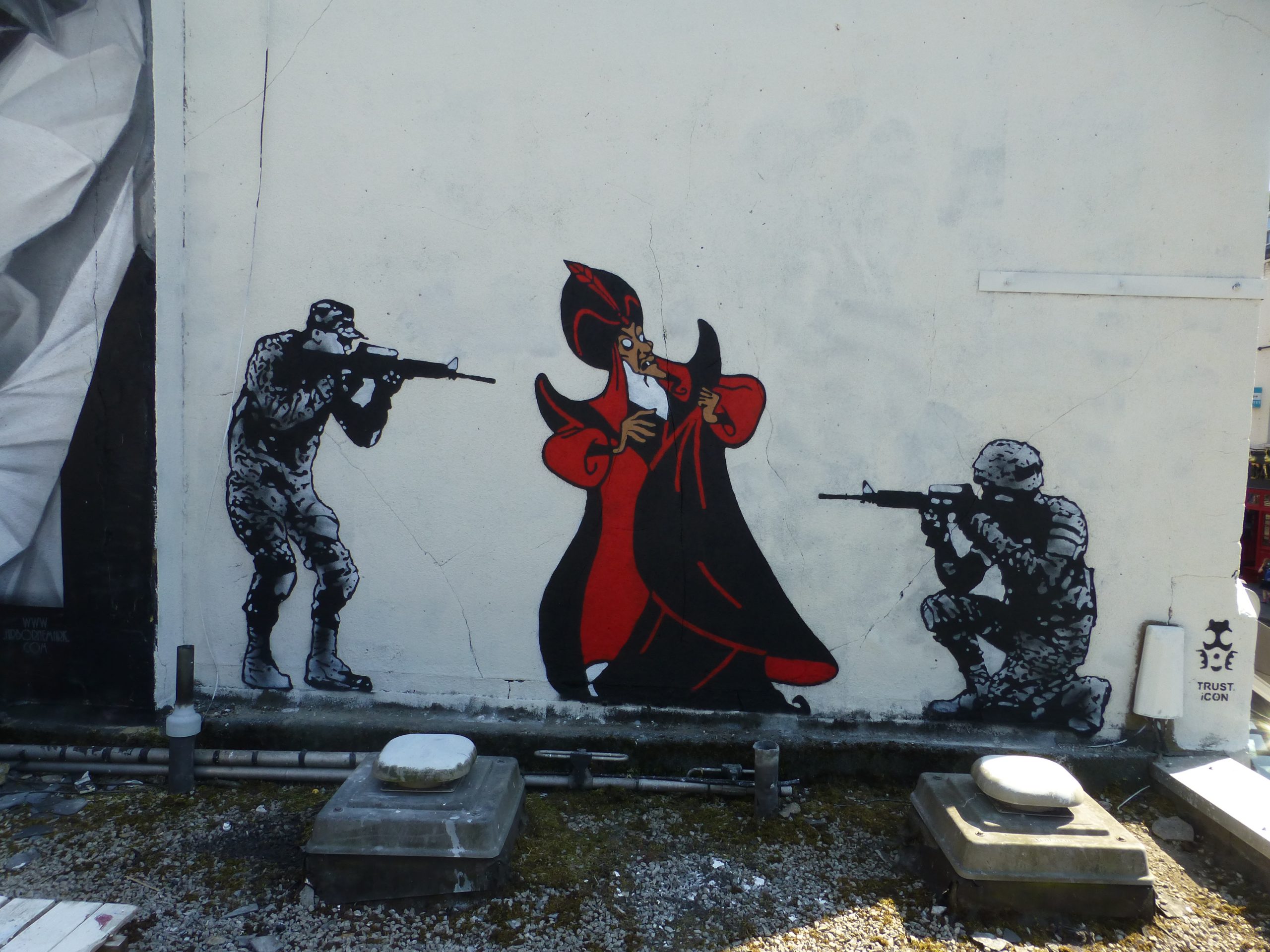 Χωρίς την άδειά σας, ισοπεδώνουμε ολόκληρες πόλεις, με ιδιαίτερη προτίμηση σε σχολεία, νοσοκομεία και σπίτια, που μετατρέπουμε δωρεάν σε οικοδομικά υλικά. Δολοφονούμε τους πάντες: νέους, ηλικιωμένους, γυναίκες, άντρες, σκυλιά, γάτες-, με ιδιαίτερη όμως προτίμηση στα παιδιά. Το μέλλον είναι δικό τους κι εμείς τους το κλέβουμε.…